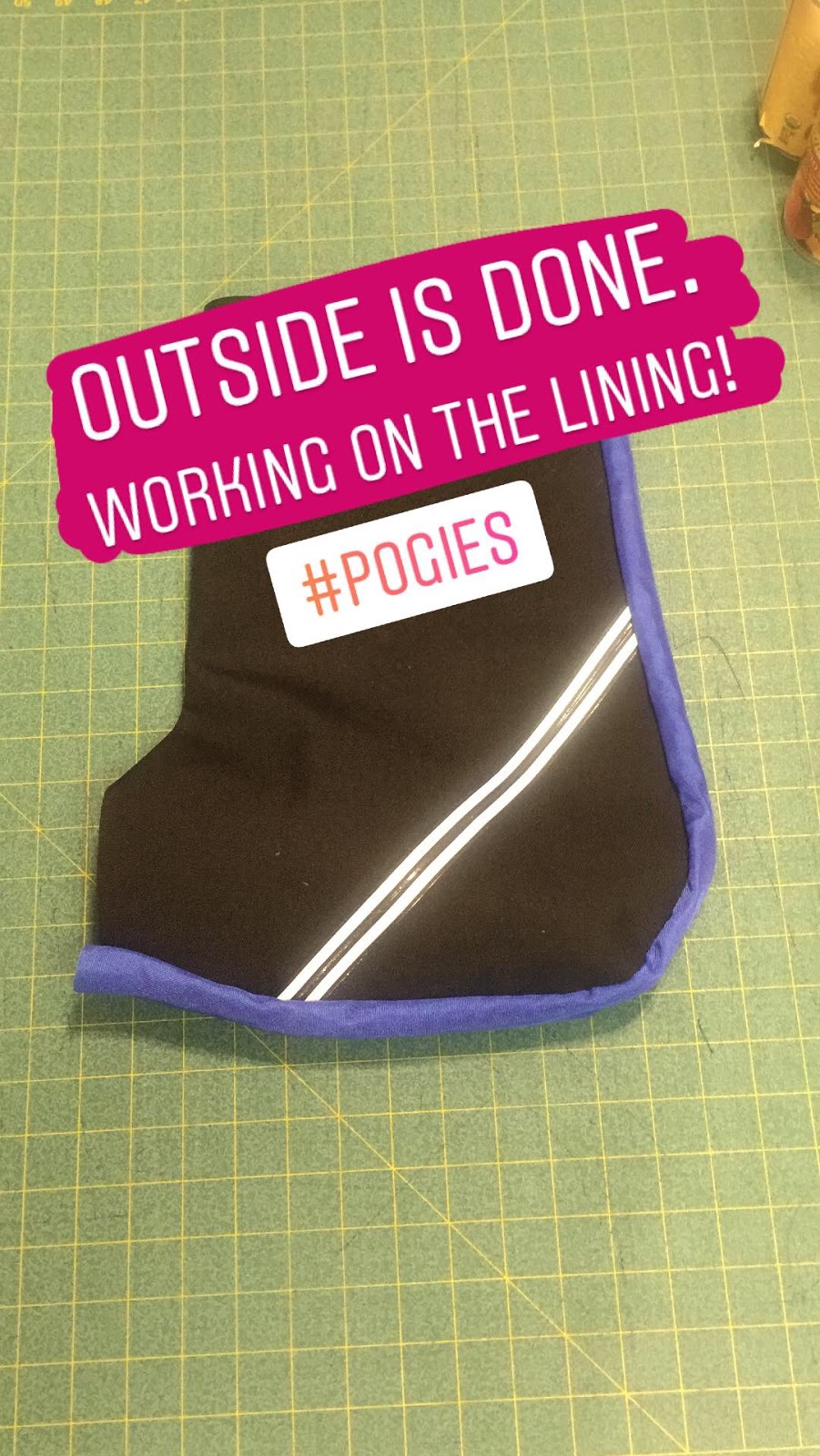 These pictures are from Instsgram so they come with all the writing and all the labels that came from Instagram. I had a sample pair from a friend and I had looked at a bunch of samples online. I traced these pogies onto paper and started making some prototypes.